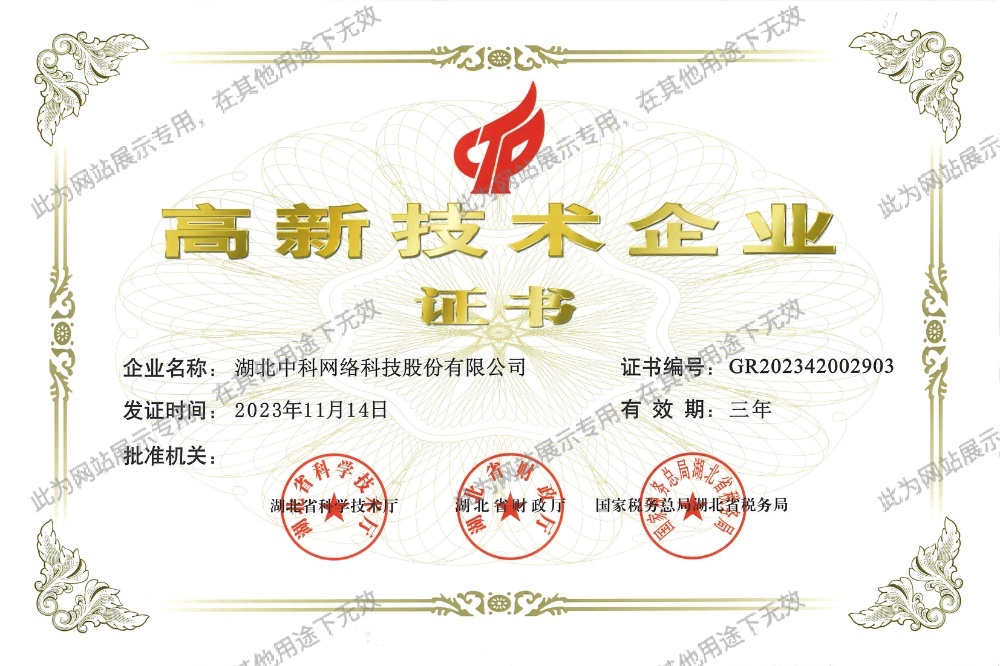 湖北中科網(wǎng)絡(luò)科技股份有限公司成立于1998年5月,注冊地為武漢市武昌區(qū),總部位于中國光谷。是智能化、信息化行業(yè)的領(lǐng)軍企業(yè),國家認(rèn)定的高新技術(shù)企業(yè)、湖北省專精特新企業(yè)。